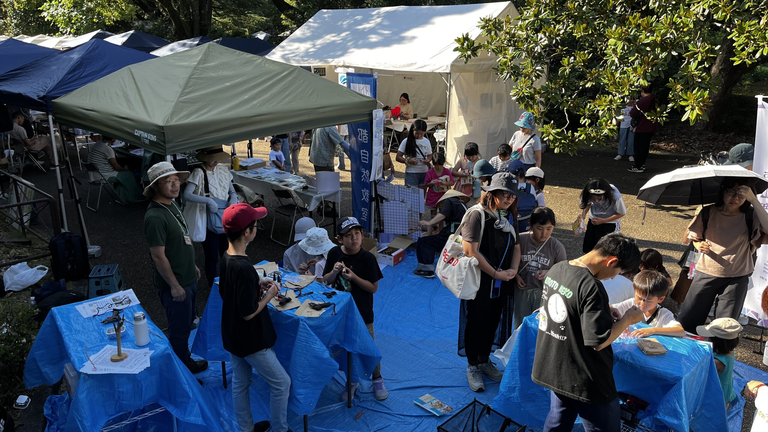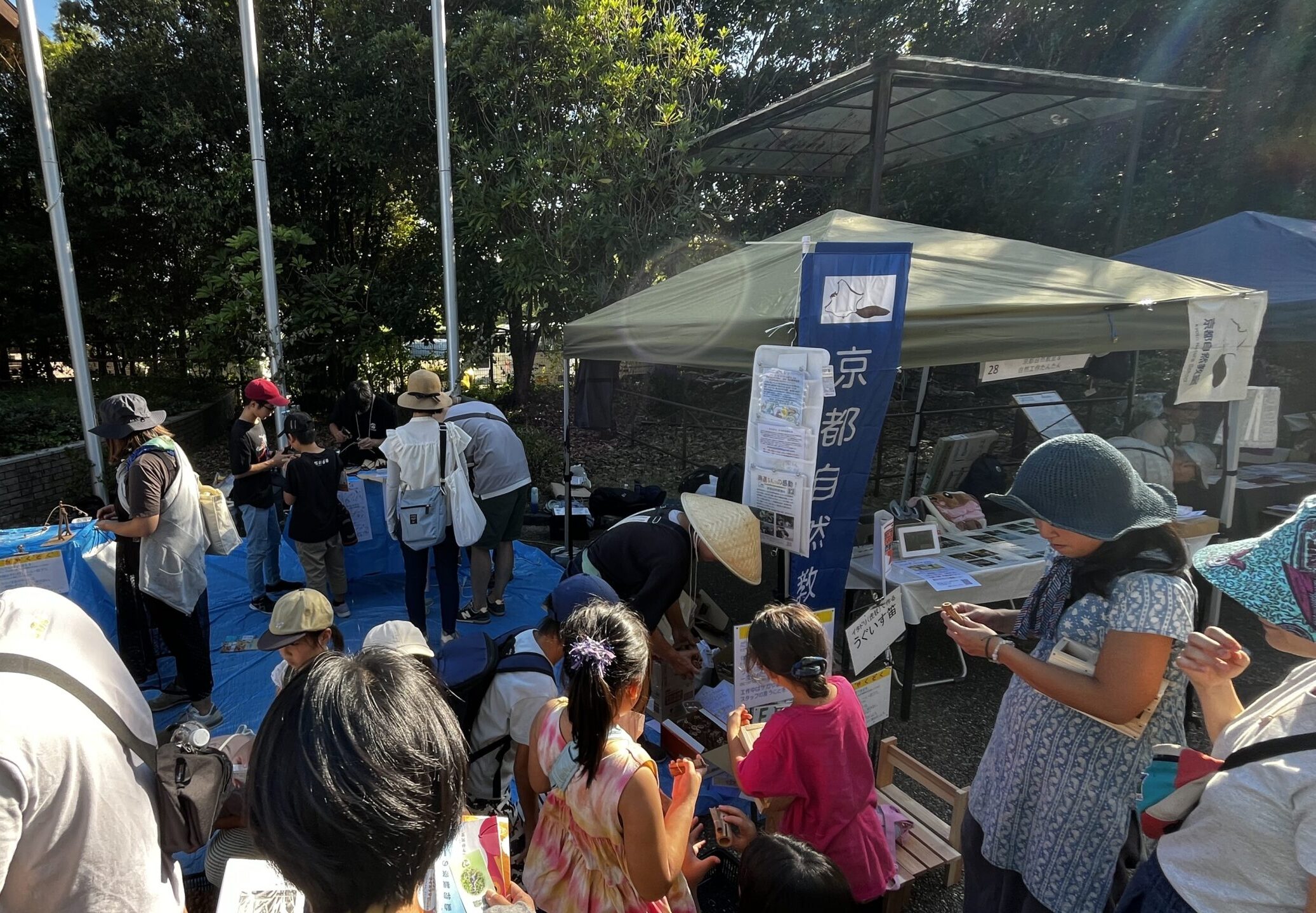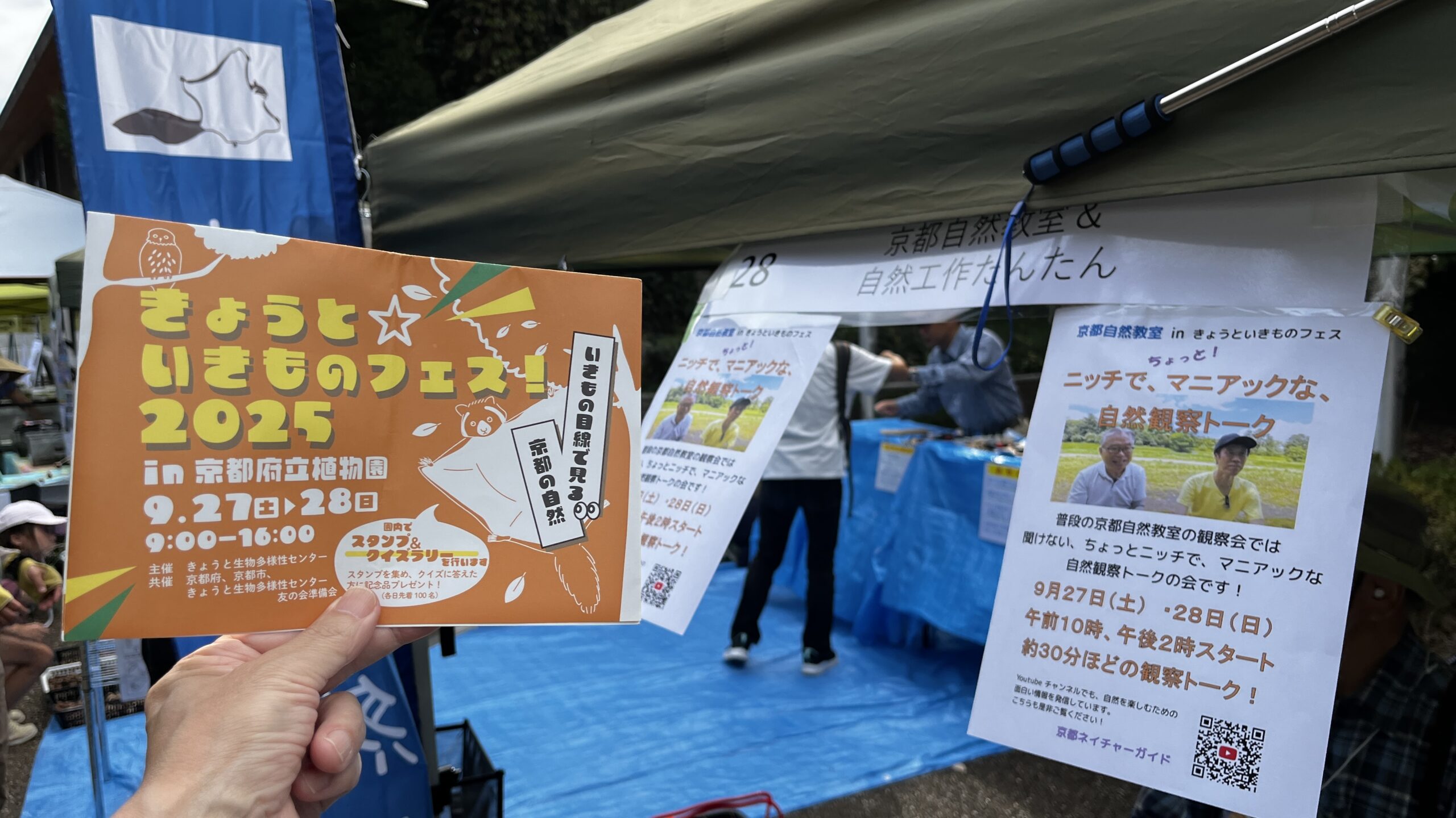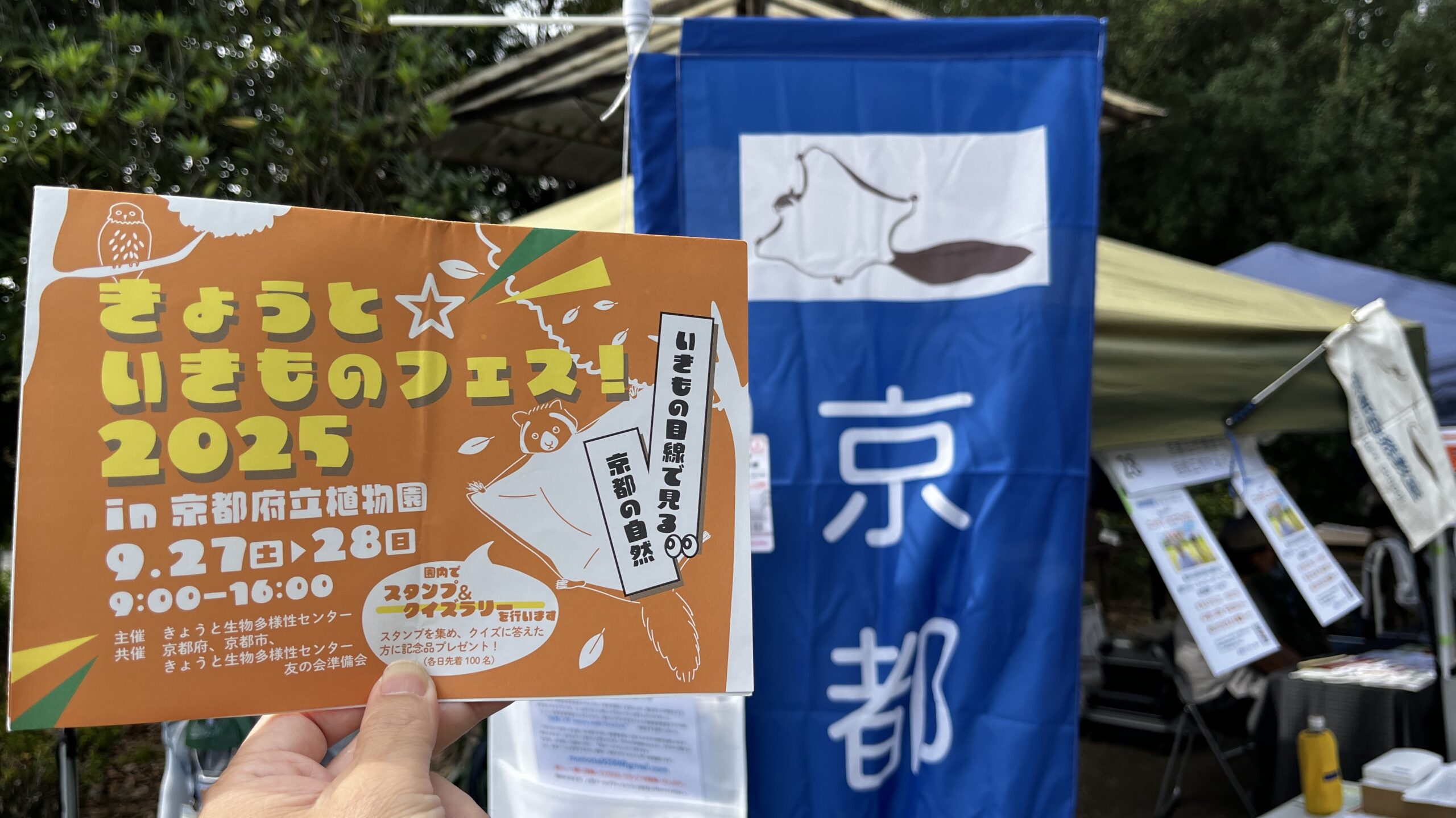 2025年9月27日(土)~28日(日)に京都府立植物園で開催された「きょうといきものフェス!2025」に「京都自然教室&自然工作たんたん」でブース出展しました。3回目の参加です。昨年(2024年)は出展ブースの人気投票で第1位をいただき、今年の本イベントのキャラクターとして、京都自然教室のロゴキャラクターである「ムササビ」が採用されました。